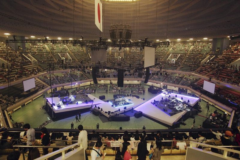 音楽を手段にするのではなく、音楽そのものを目的とするライブ。そのためのステージはどうあるべきかという問いに対して、武道館、という敷地条件だけの状態から考え始めることにしました。そのことで、スクリーン位置の設定や、照明トラスとスピーカーとの位置関係など、解決を要する多くの課題に遭遇することになりながらも、できあがったものは、武道館にあるべき自然な姿に近づくことができたと、考えています。